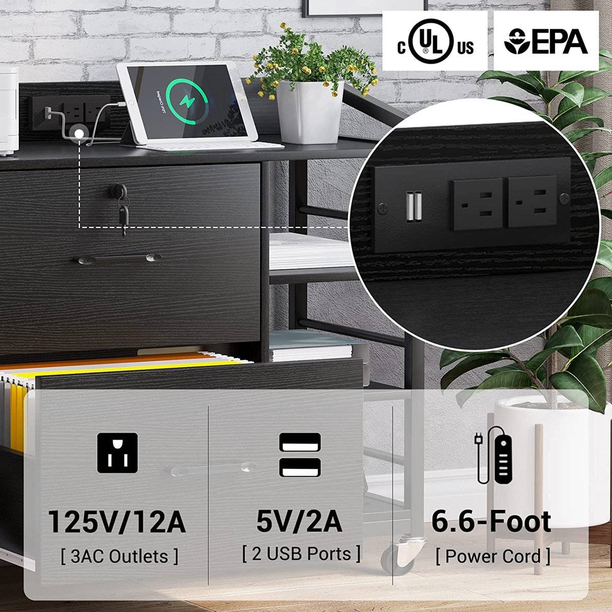 You get everything with this Printer Stand Bookcase Power Station Mobile Office File Cabinet! 44" file cabinet, filing cabinets fits legal, letter, a4 size, 2 drawer office file cabinet for home office with lock, power strip, 6 adjustable shelves & 4 hooks. The 6-layer storage shelves can be installed according to the size of the item. 4 hooks for briefcase, mug, earphones, umbrella, etc. File cabinet for home office equipped with 2 AC outlets and 2 PowerIQ-enabled USB charging ports to provide power for up to 4 devices simultaneously. The desktop size is 44 ", which is large enough to use 2 machines at the same time, such as a printer, scanner, copier, coffee machine, desk lamp, etc. Spacious desktop for 2-3 machines: printer, scanner, fax machine, and showpieces. Equipped with 2 AC outlets and 2 PowerIQ-enabled USB charging ports to provide power for up to 4 devices simultaneously. A lock along the file drawer helps secure your important papers for peace of mind.